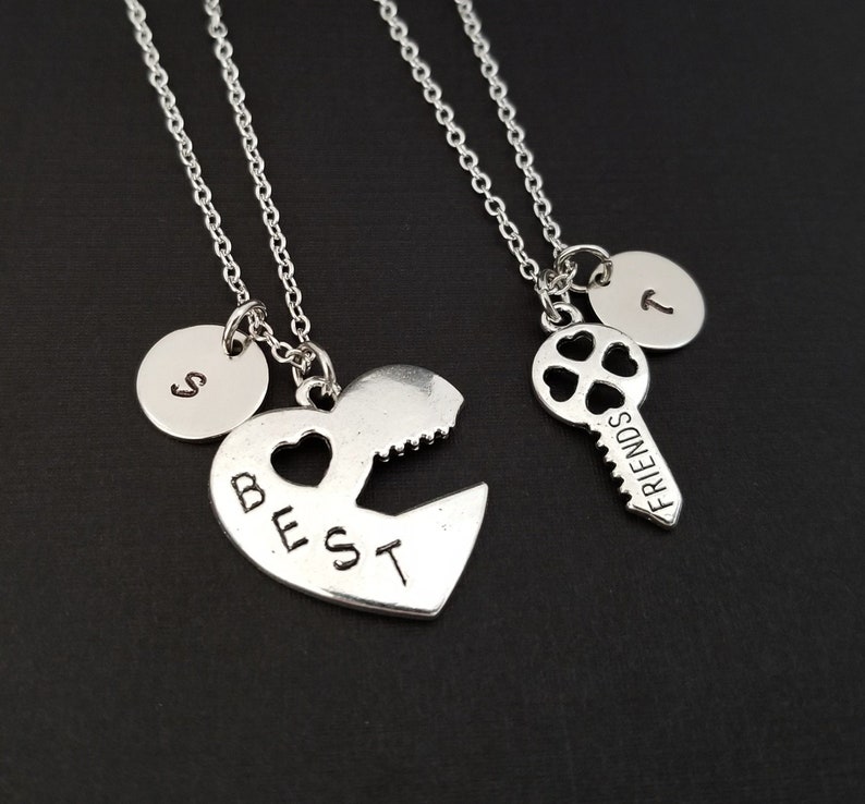 Silver Best Friends Necklace Heart Key Necklace Etsy